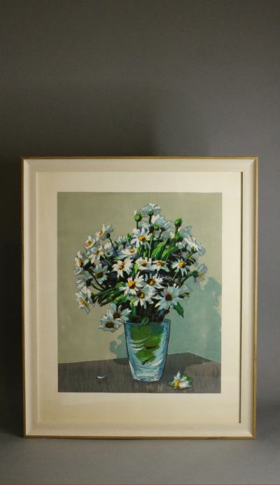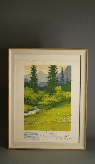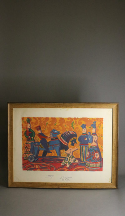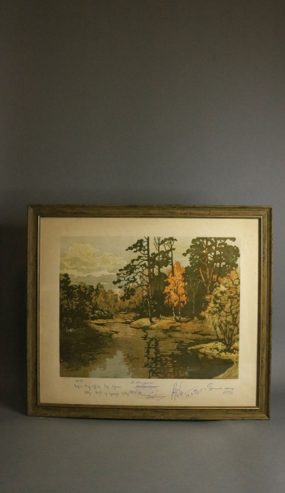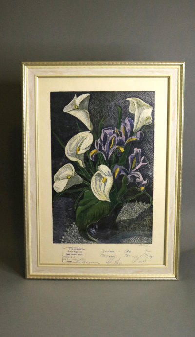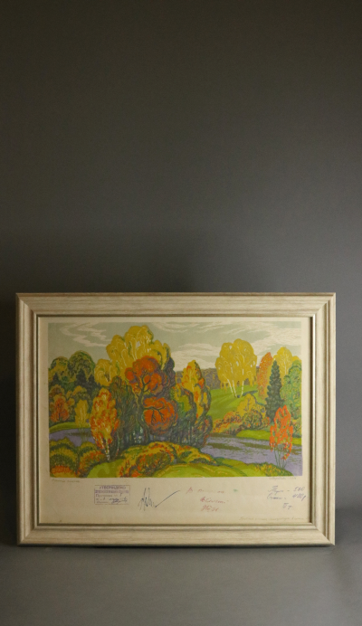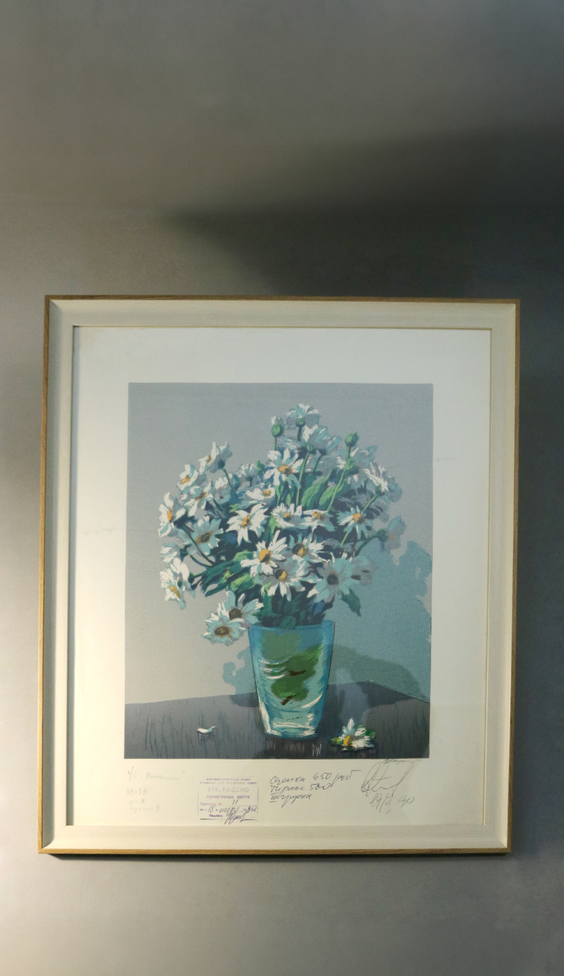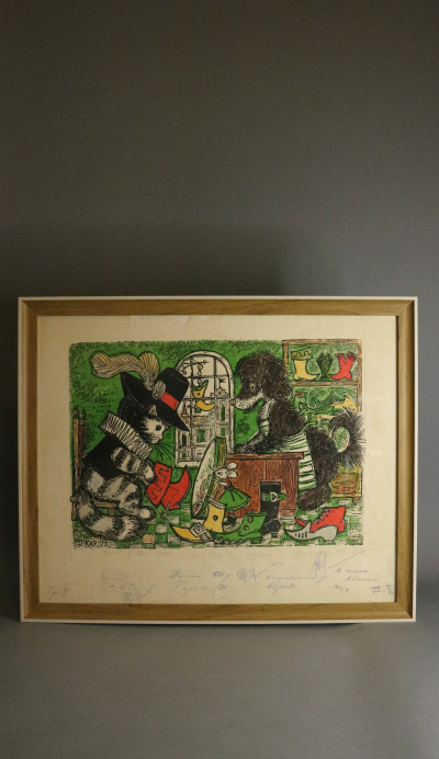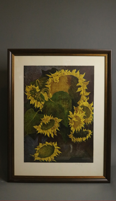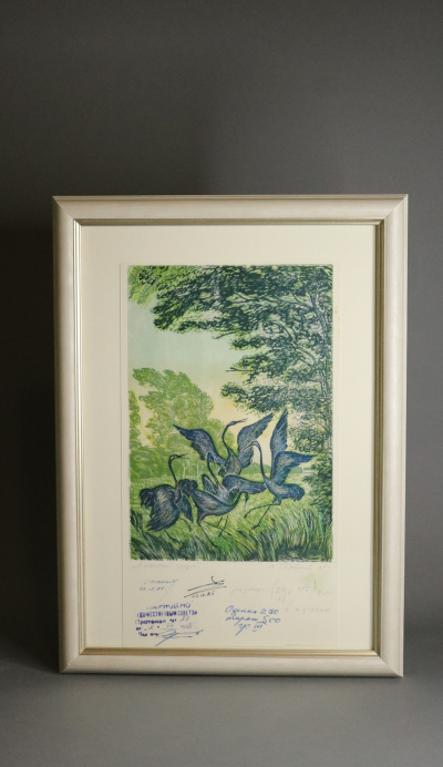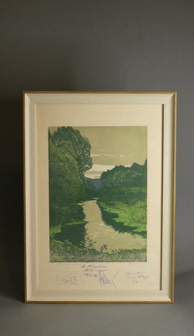 Линогравюры, подписанные художниками-графиками, отпечатаны ещё в Советском Союзе и оформлены в багет, тщательно подобранный под цветовую гамму изображения. На некоторых линогравюрах оставлены надписи, заметки, информация о тираже и стоимости, что делает их уникальными.