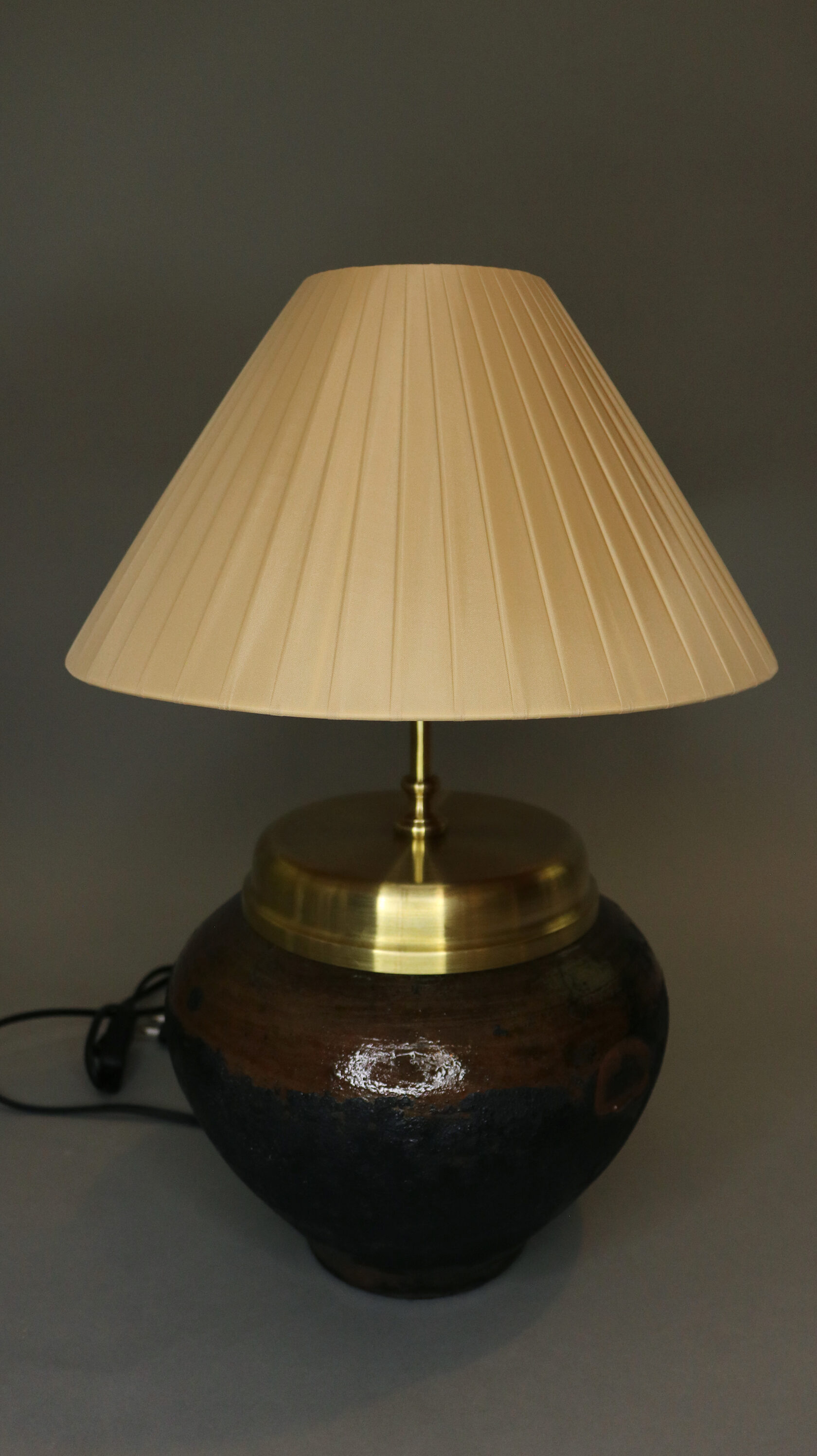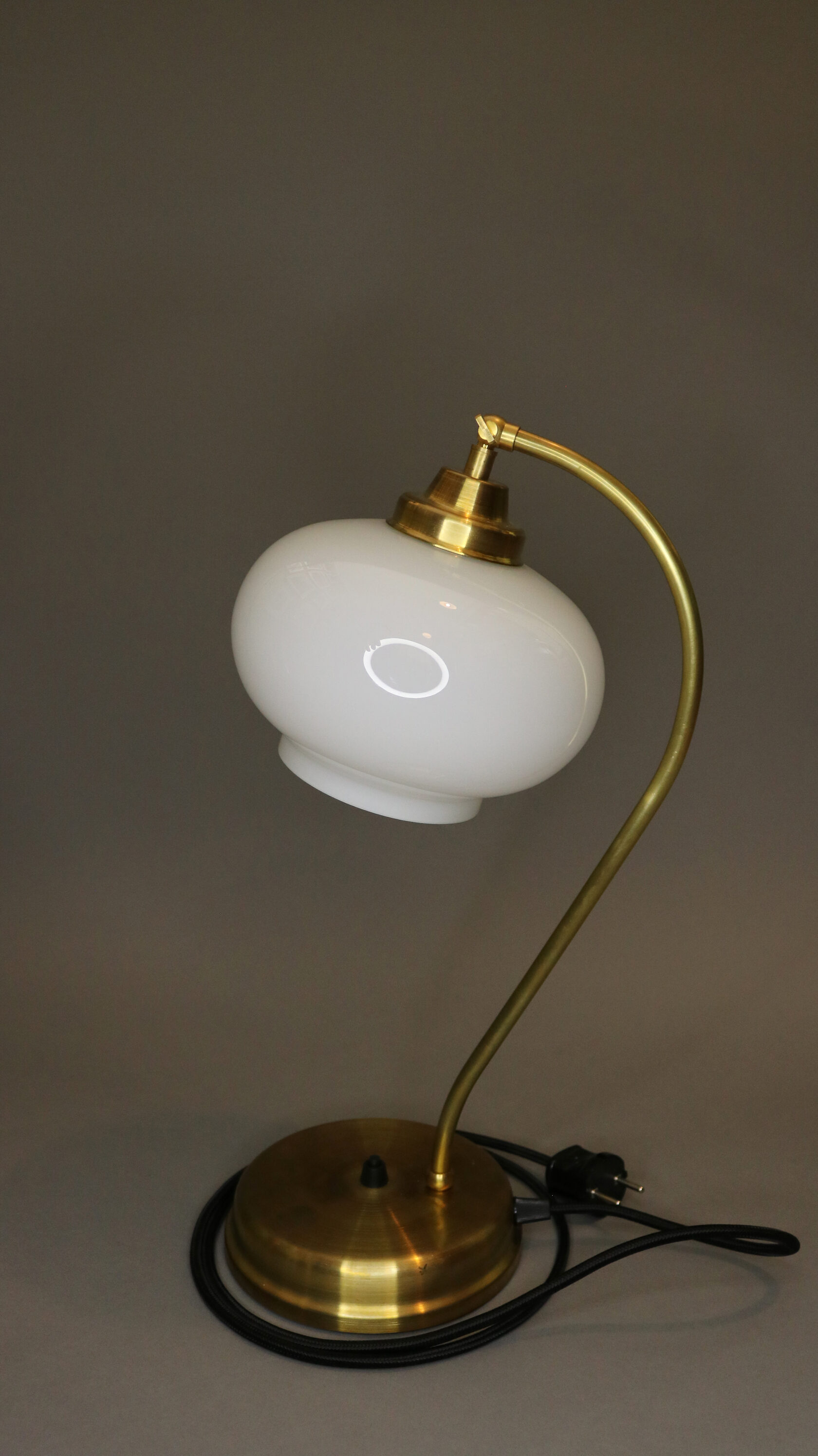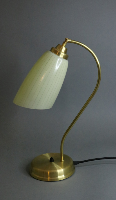 Настольные лампы соединили в себе сразу два промежутка времени, настоящее и прошлое, поскольку плафоны, используемые для них, были сделаны в ГДР, а основания, выполненные из латуни в духе 60-х — результат работы современного ручного производства.