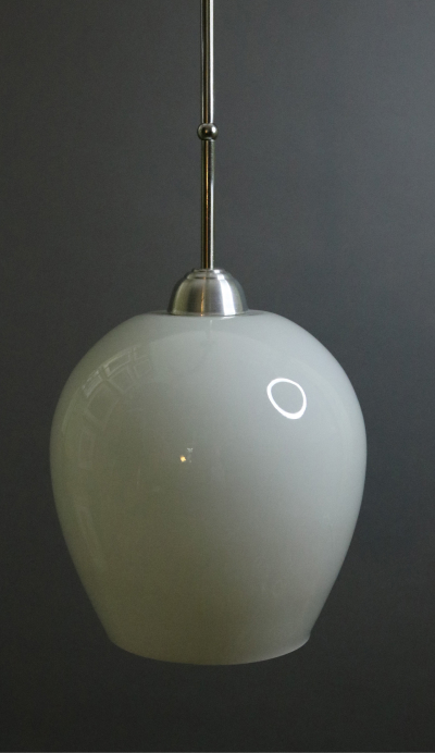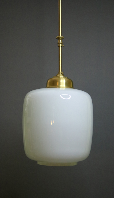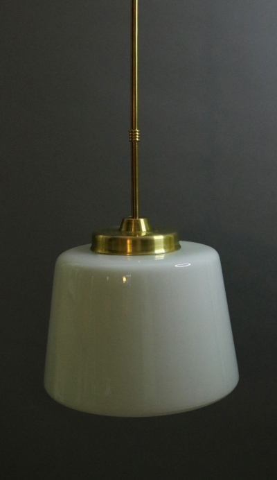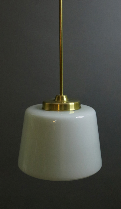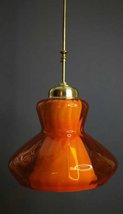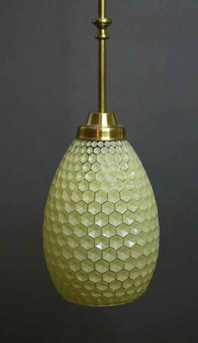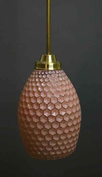 Подвесные светильники, представленные в ассортименте, соединили в себе сразу два промежутка времени, настоящее и прошлое, поскольку плафоны, используемые для них, были сделаны некогда в СССР и других социалистических странах, а чаши и подвесы, выполненные из латуни и алюминия в духе 60-х — результат работы современного ручного производства.